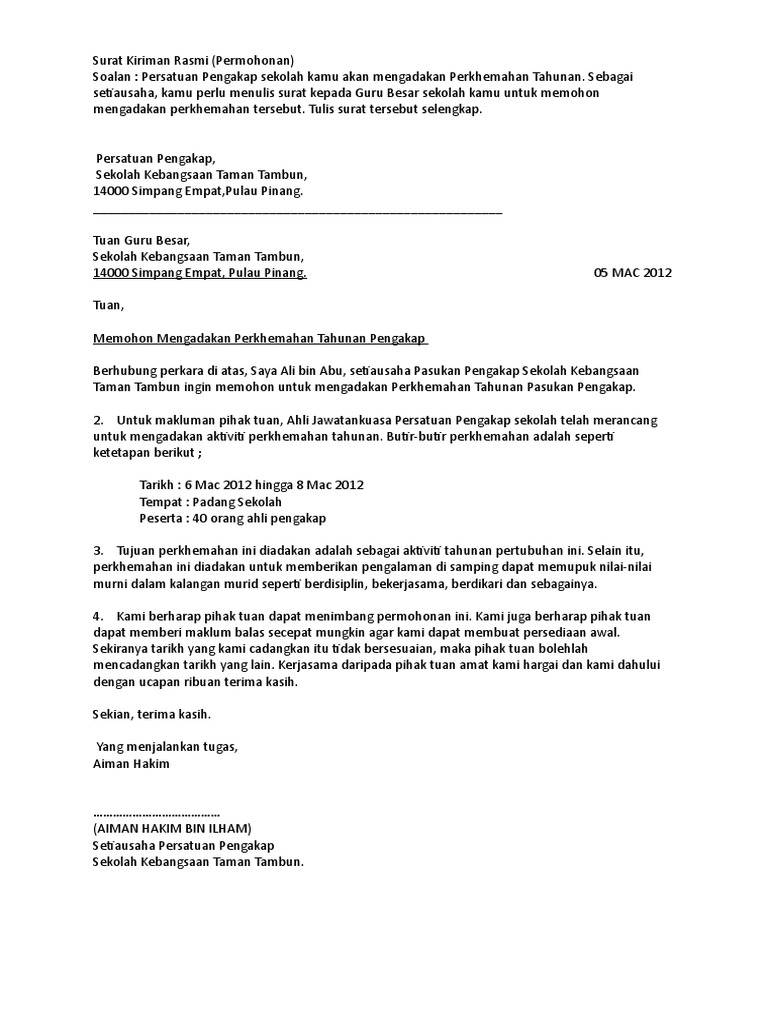 Contoh Surat Kiriman Rasmi Permohonan Kumpulan Contoh Terbaru